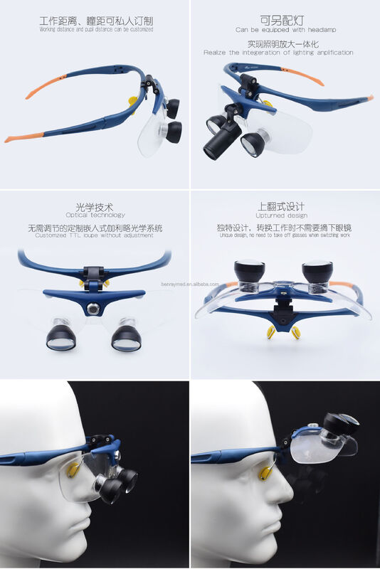| Resaltar: | dental loupe head light,custom magnifying glass dental,surgical loupe with working distance |